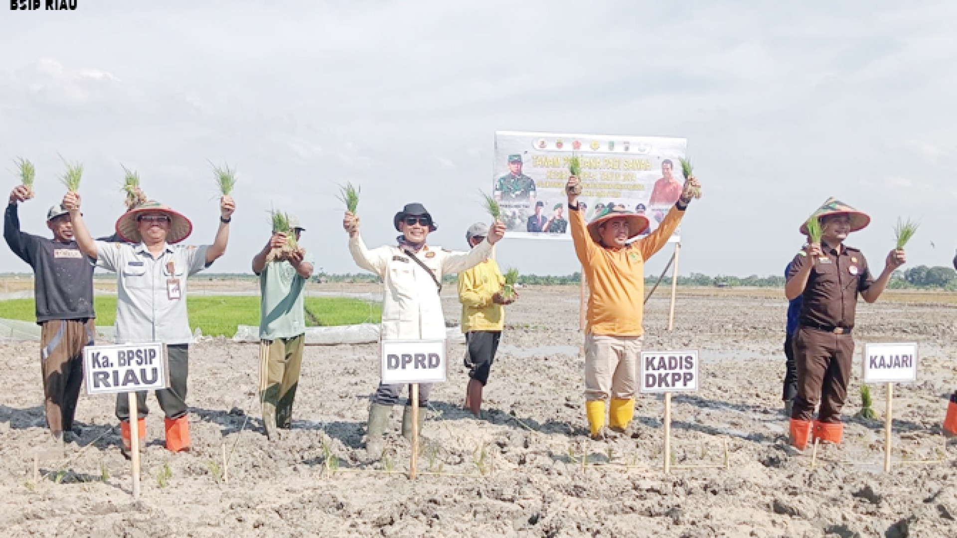Tanam Padi Bersama di Lokasi PAT Oplah Antisipasi Darurat Pangan Kabupaten Indragiri Hilir